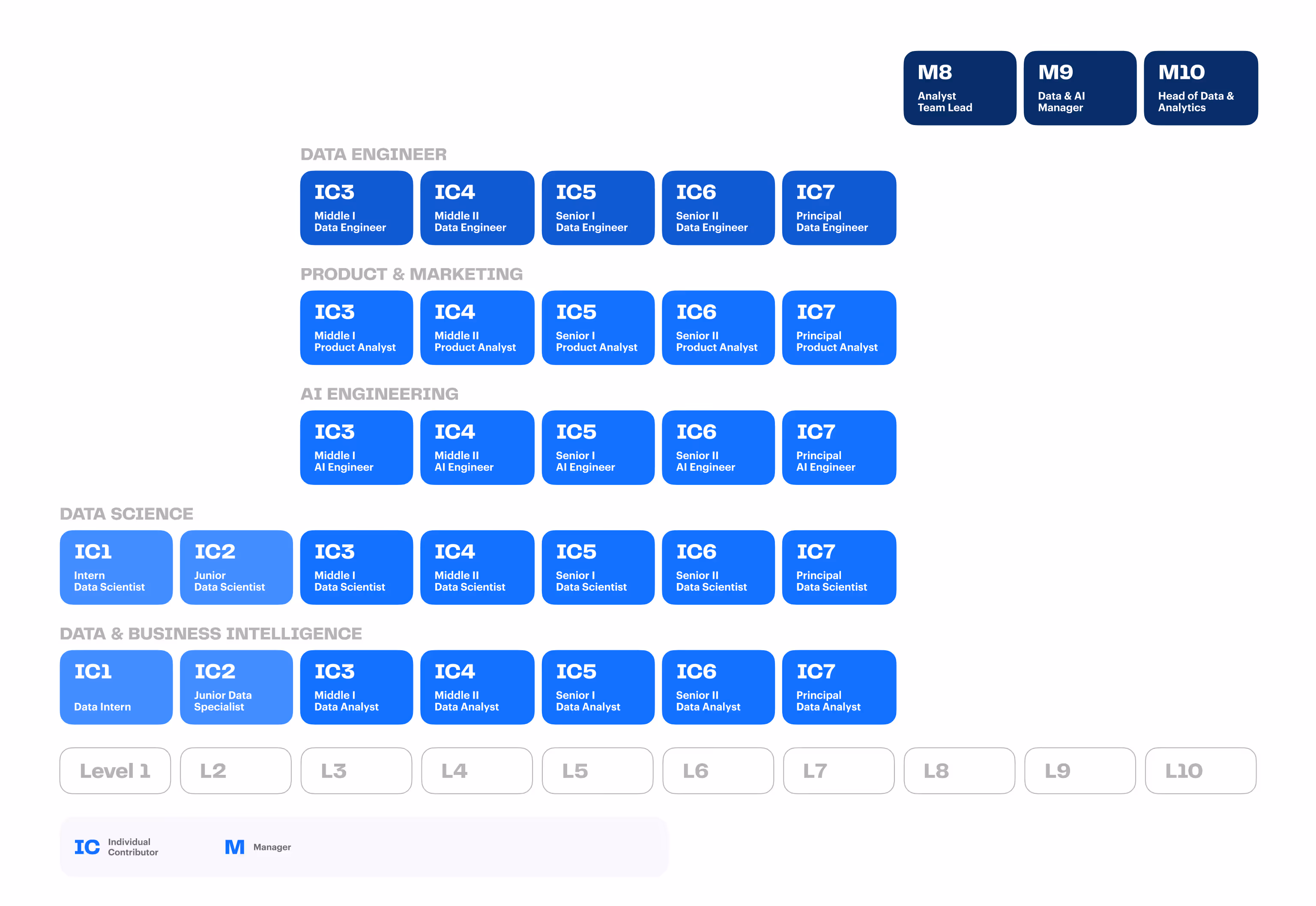 Our career map helps you take charge of your professional growth. With 10 growth levels, from L1 to L10, each step features clear milestones to support your development.